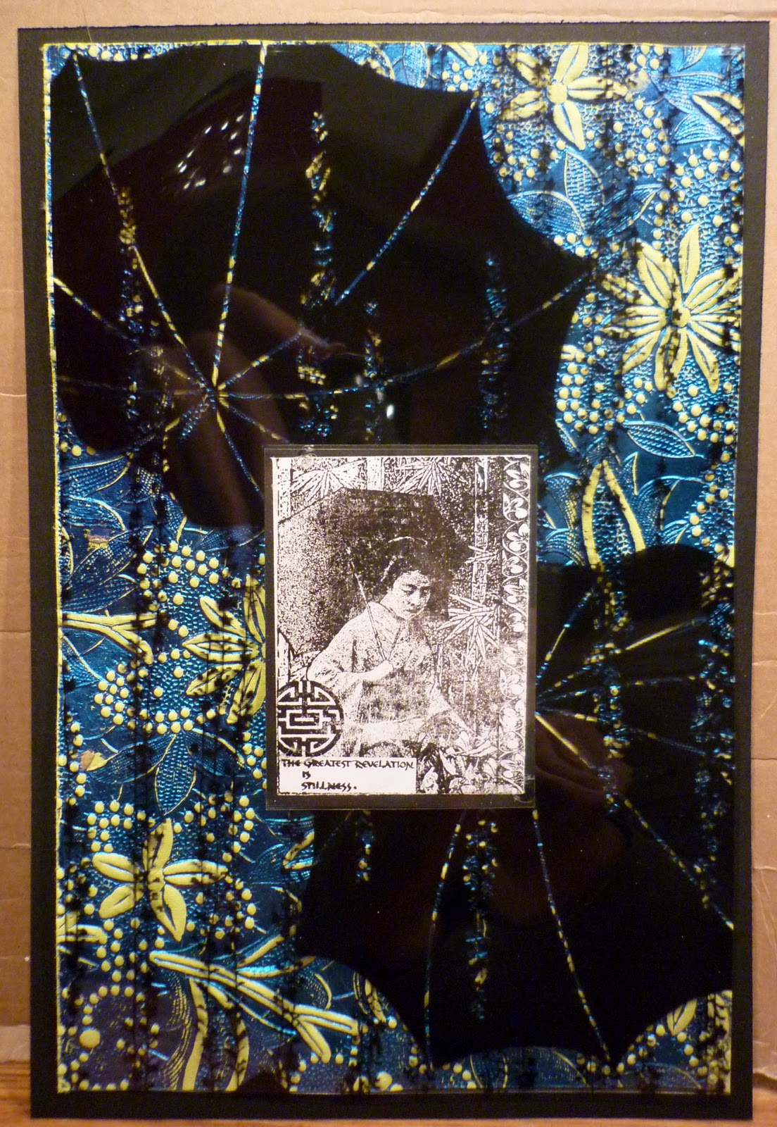 My Geisha is a lovely stamp by Crafty Individuals underneath I have once again printed onto acetate one of my lovely Japanese designs which is then placed over some gorgeous handmade paper. Unfortunately the photo doesn’t do it justice , I must find me a better photographer or at least try to take the pictures in the daytime !