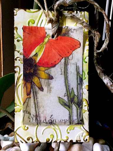 3. Well that looks just lovely Marie 🙂 your embossed and inked background is the perfect seting for your fabric tag :)Have a drink for me please but make it a white wine lolHugs von x