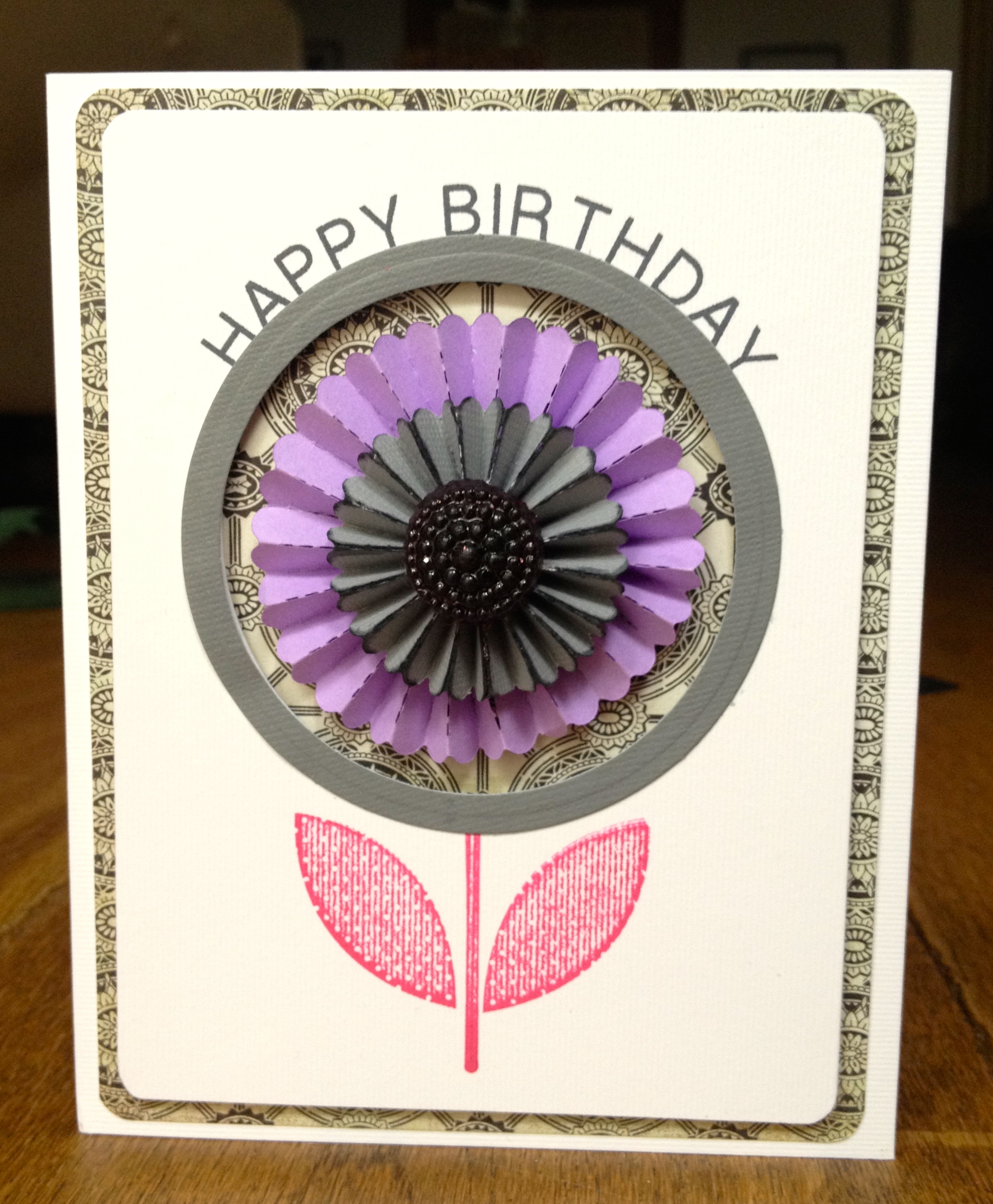 Basic Grey Dp for the background , Spellbinders circles for ……the circles duh!!!!!  Tim Holtz mini and maxi paper rosettes dies and  what looks like a Rowntrees blackcurrent fruit pastel in the centre was made by I with one of my handmade moulds filled with clear acrylic and a few drops of alcoholic , sorry I mean alcohol ink for the lush colour. Leaves courtesy of SU and Melon Mambo ink. Oh and the curved sentiment is from my cameo did a little bit of magic to curve the sentiment and all done !