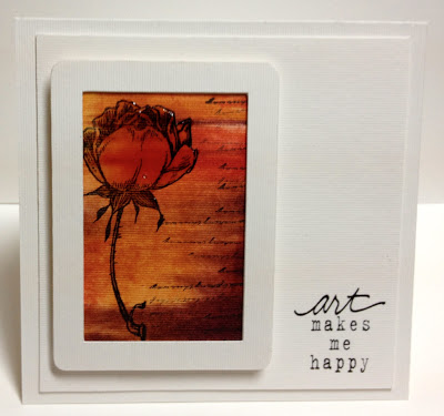 I used various Adirondack inks to create the background, a small section of an old Hero Arts stamp for the lettering and this pretty flower stamp by Inspired by Stamping . Glossy accents were added to the flower and the frame and the sentiment were created by my darling Cameo.