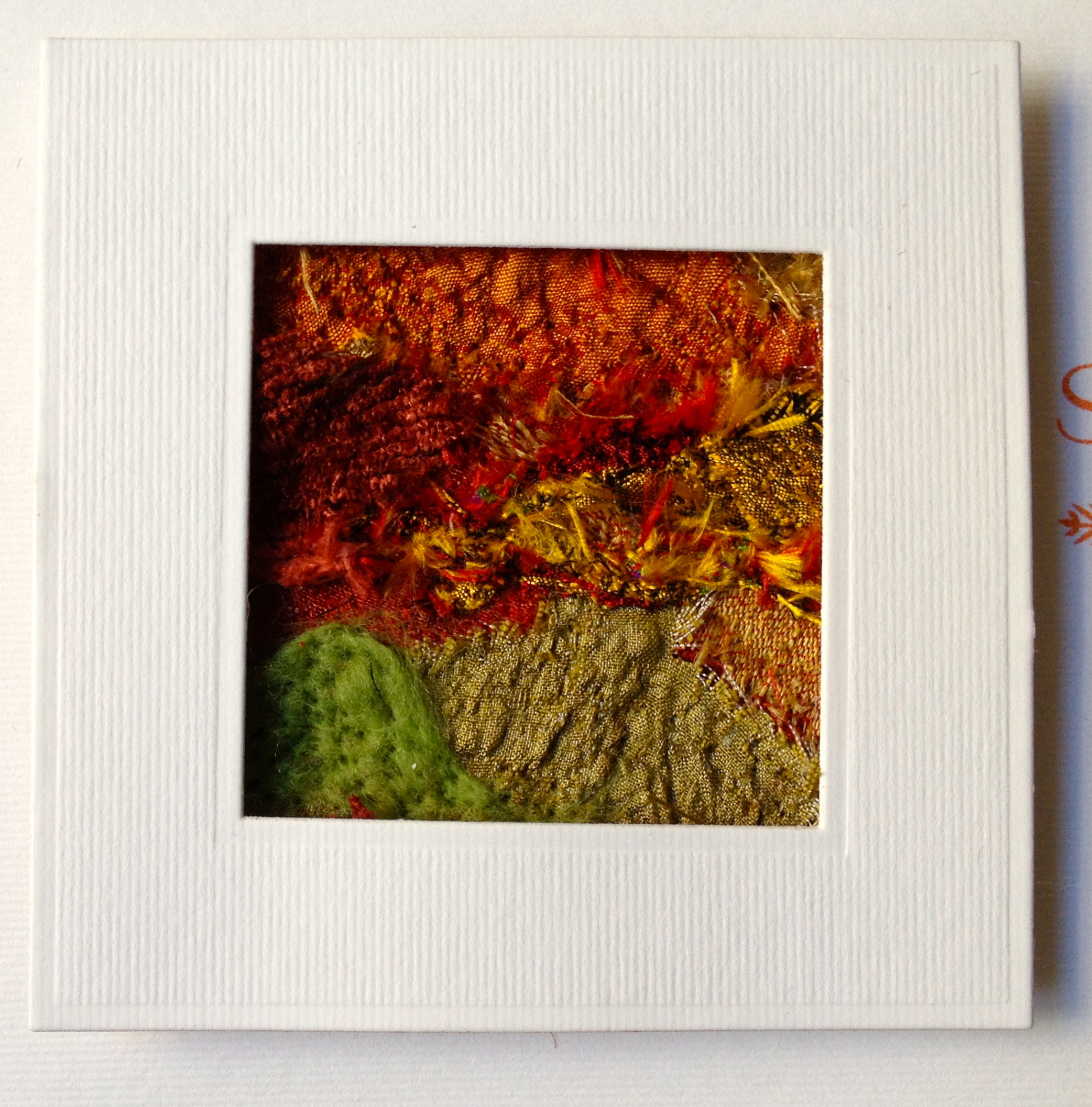 Autumn for me is a lovely time I adore the change in colours and the beauty of the fallen leaves and wanted to create something textural.I used my embellishing machine to create this little scene using various fabrics, silks and wools this is the first time I have actually made something using this machine and I quite liked the result. The sentiment was created with my Cameo