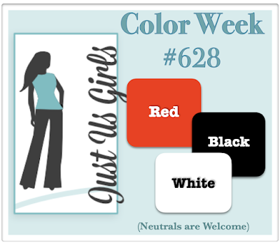 So here I am again with another card for Just us Girls, it’s colour week this week and they are asking us to use Red, Black, and White.