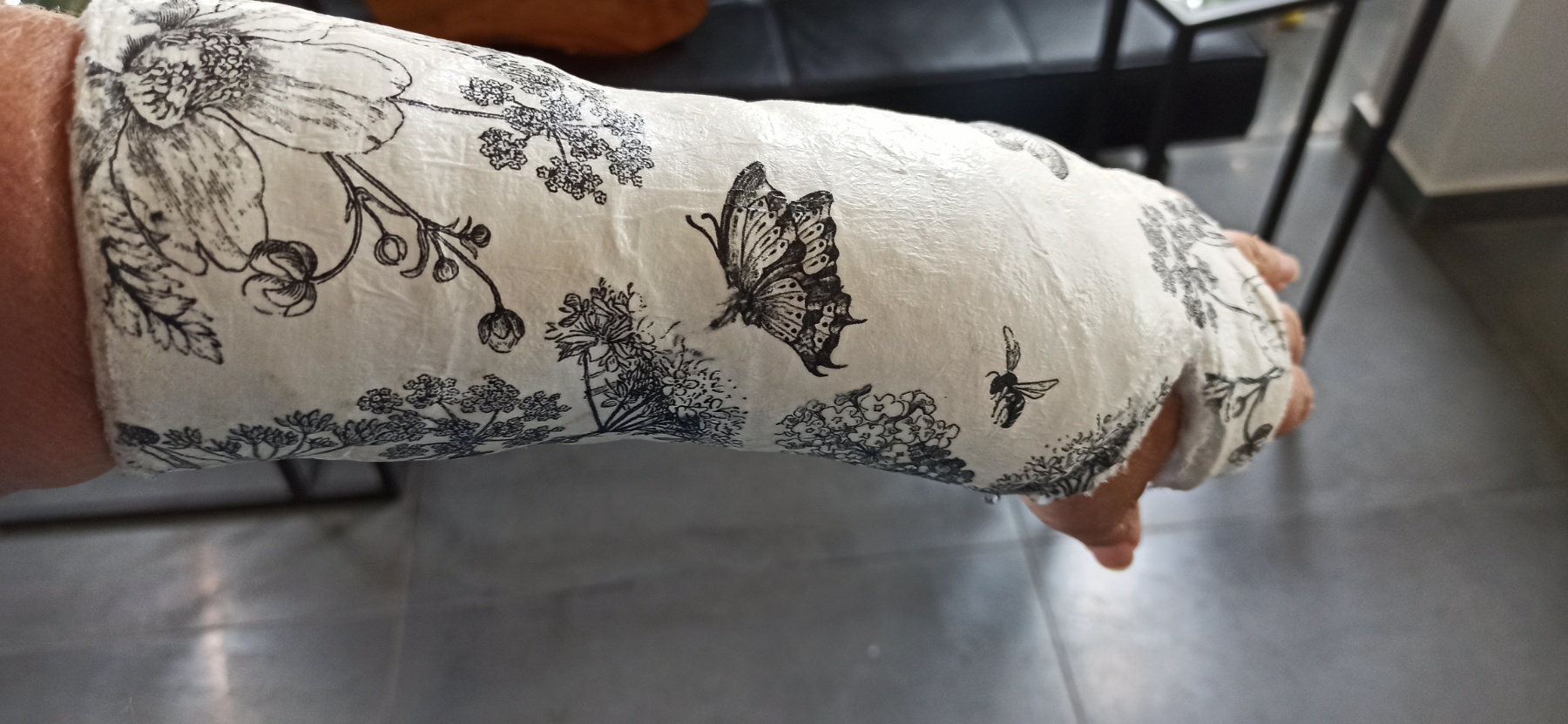 I was so fed up with my plain plaster cast and my annoying little sister Kal kept urging me to jazz it up so this is all I could manage with the help of Mr.P of course.