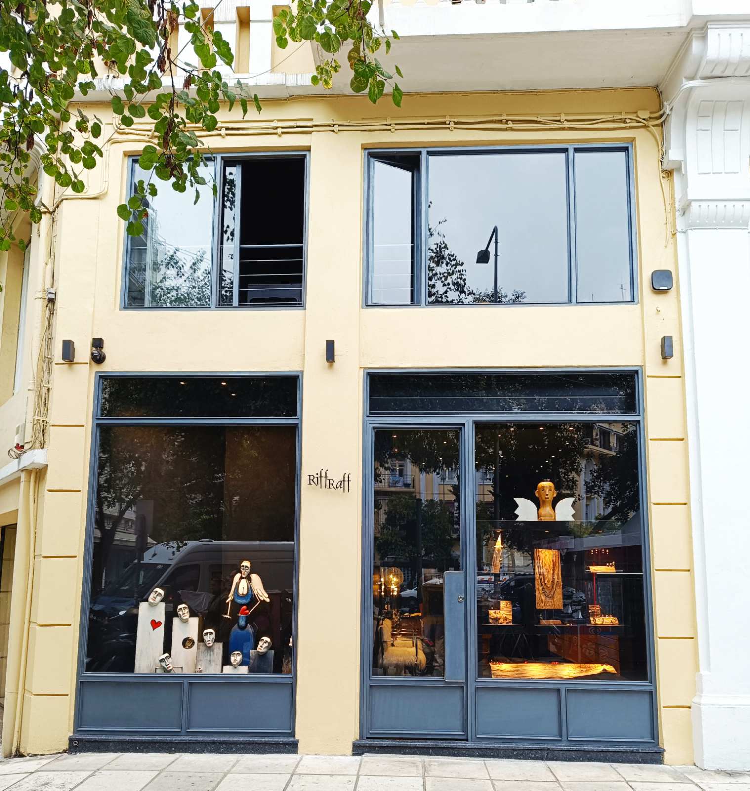 Here’s a little glimpse of the new shop, not a very good photo but the best one I could get from a distance to show both windows.