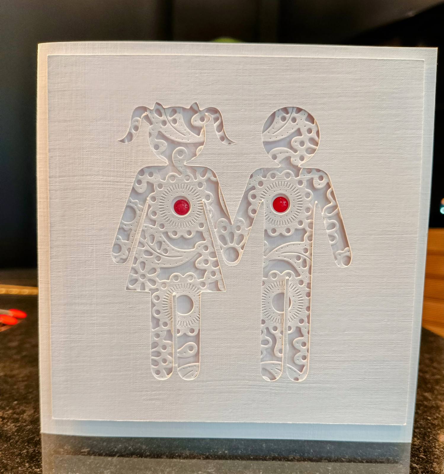 For my first card, I used my brand new Silhouette Cameo 5 to cut out the sweet couple and used Poppy Stamps Nordic Flourish Background behind them.I also used the same background for my second card together with another Poppy Stamps Nordic die in butterfly form, all popped up with a touch of foam for dimension. A few enamel dots strategically placed and other you have it! Did you guess which country’s flag inspired me? Japan !!! I’ve always wanted to visit and maybe this year will be the year !!! fingers crossed.