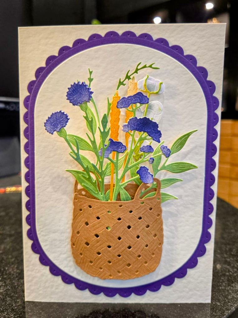 The frame is from The Greetery, and the basket and blooms are courtesy of Honey Bee, coloured with distress oxides.