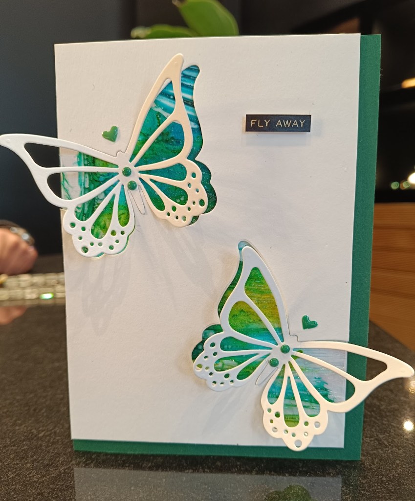 I used another couple of fabulous die sets from A Pocket Full of Happiness this gorgeous Tucan and a fantastic modern alpha set. I won’t bore you with the details of how I made it as it looks perfectly obvious,lots of die cutting tons of paper piecing a huge mess on my desk,floor and the dog !